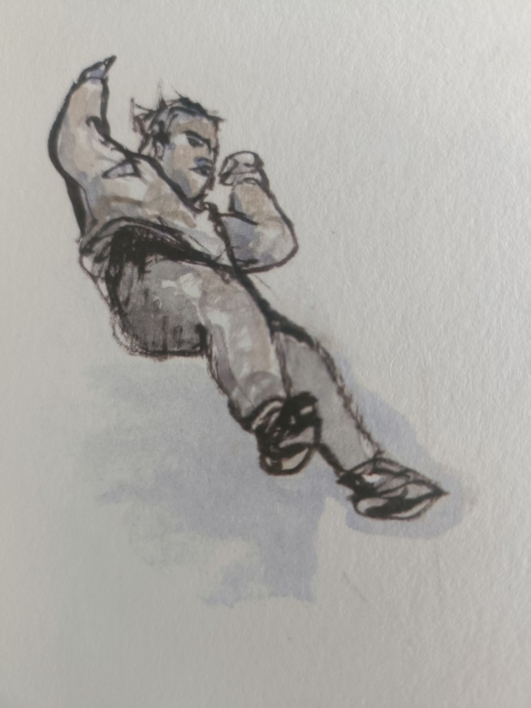 Si bien todo ello son experiencias reales, no todo es narrado de forma realista. El autor recurre a pasajes simbólicos donde juega con imágenes y espacios vacíos que nos traen estados emocionales más que remitir a sucesos externos. Así, espacios en blanco que recogen al lector contrastan con páginas más densas y caóticas. Momentos de aceleración (colapso mental, crisis psicóticas, episodios intensos de voces) que crean sensación de vértigo y momentos de pausa con más silencio visual, diálogos escasos y viñetas más amplias. De esta forma el ritmo narrativo es más bien oscilante, con momentos de evocación emocional vertiginosa, momentos más ensayísticos y momentos de calma y silencio.